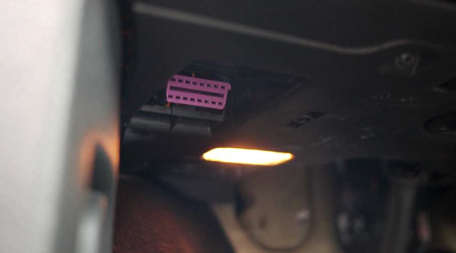 寻找车辆OBD接口位置,OBD接口为16针母头接口,接口为梯形状。